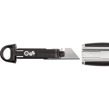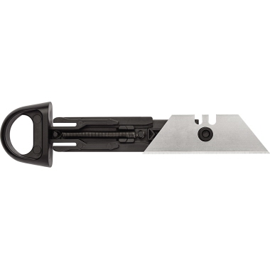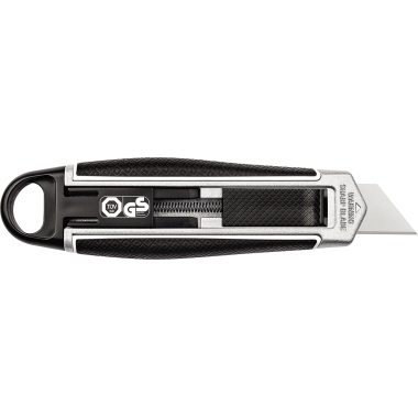 Die federbelastete Klinge zieht sich automatisch zurück, sobald sie keinen Kontakt mehr mit dem Schneidegut hat und sorgt so für mehr Sicherheit beim Schneiden (Schieber während des Schneidens nicht festhalten). Die Klinge ist für Rechtshänder leicht umsteckbar.