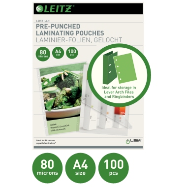 Leitz Laminierfolie iLAM 229 x 303 mm (B x H) DIN A4 80µm mit Abheftlochung nicht selbstklebend glänzend 100 St./Pack.